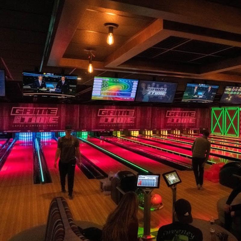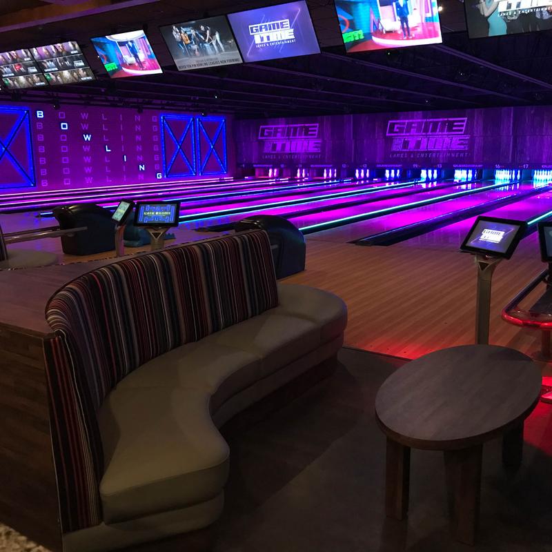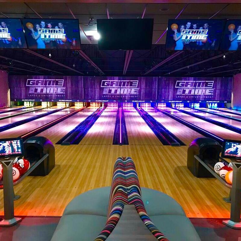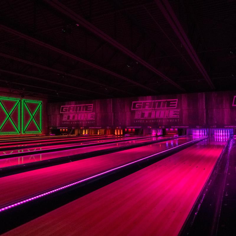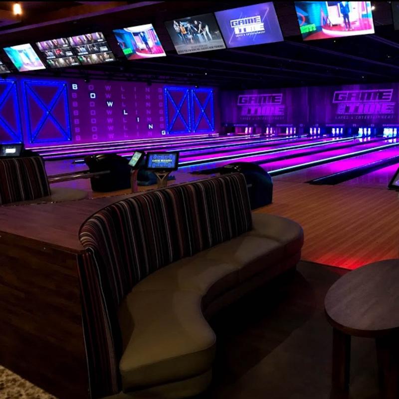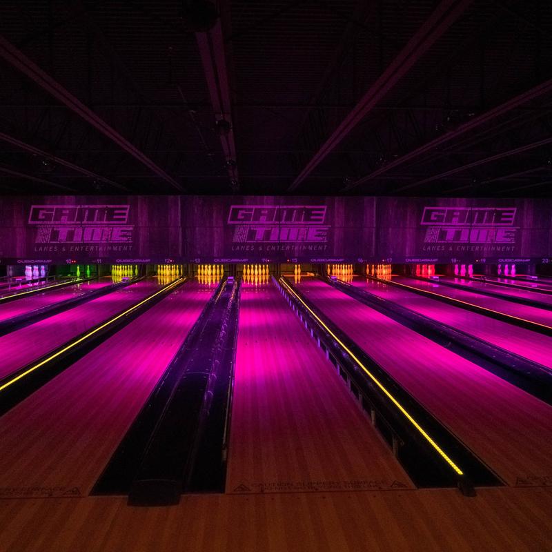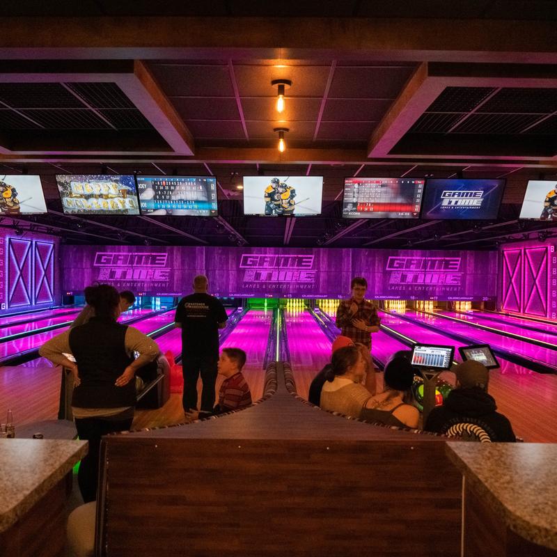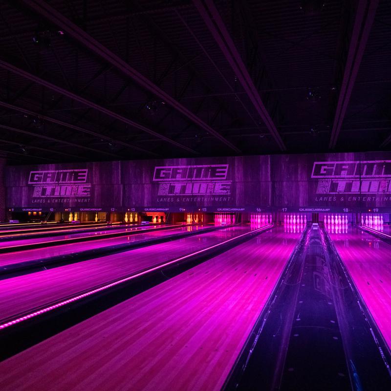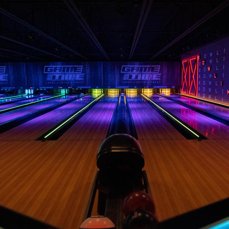 Experience the joy of bowling for all ages and skill levels at Gametime. Choose from our array of 12 state-of-the-art lanes, featuring traditional and Hyperbowl options, and enjoy a fun bowling session with friends and family.
