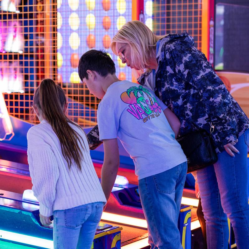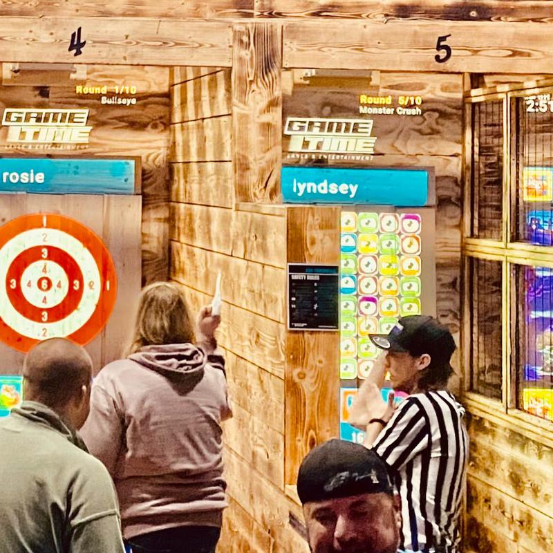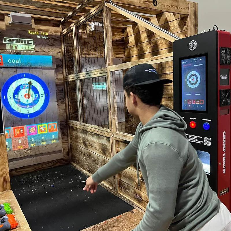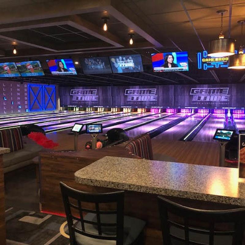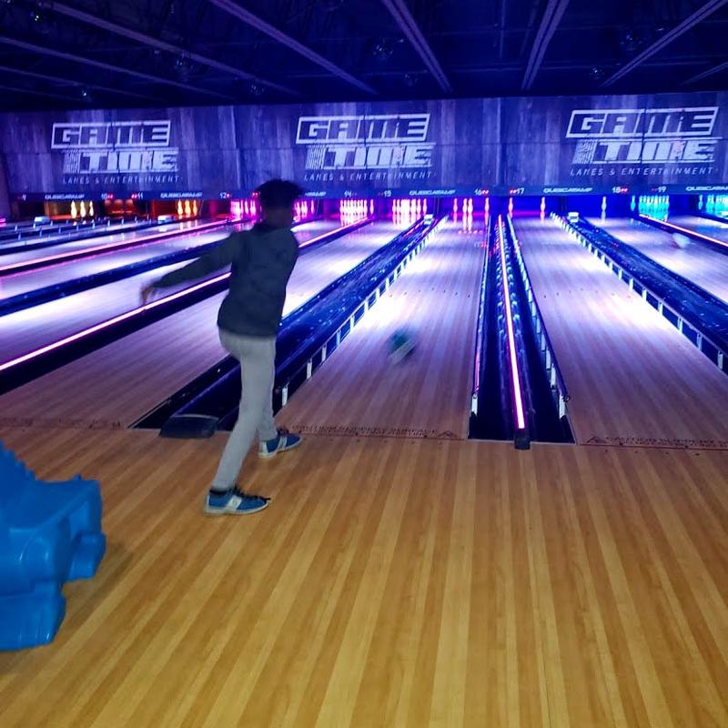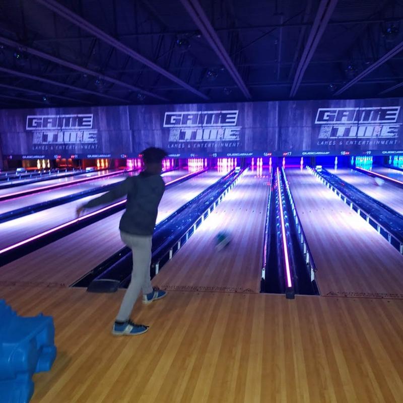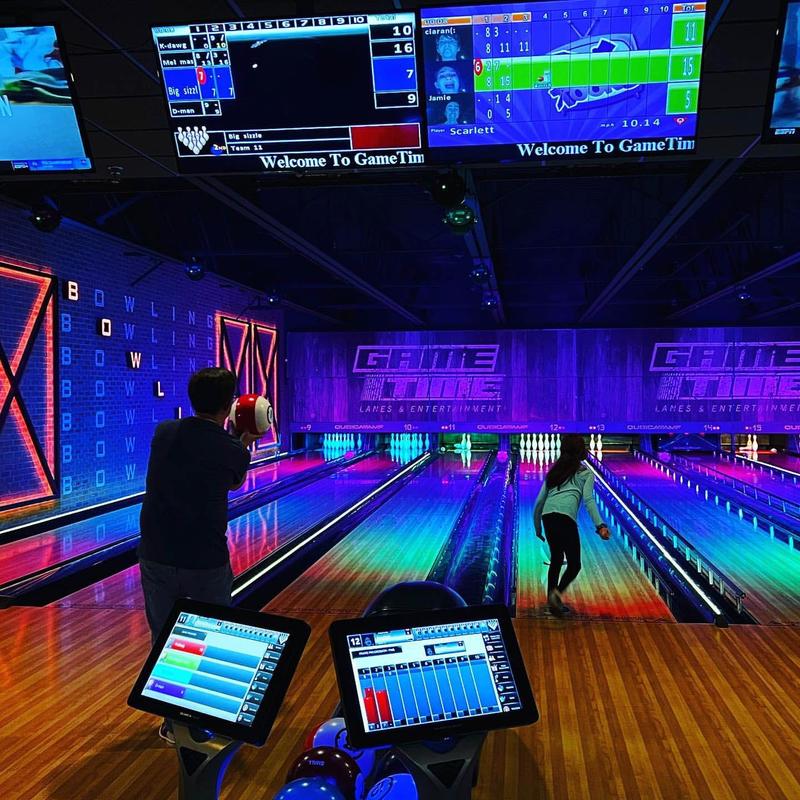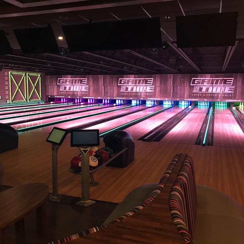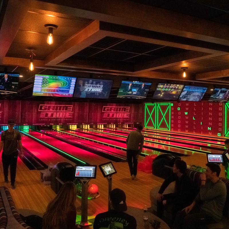 Experience the joy of bowling for all ages and skill levels at Gametime. Choose from our array of 12 state-of-the-art lanes, featuring traditional and Hyperbowl options, and enjoy a fun bowling session with friends and family.